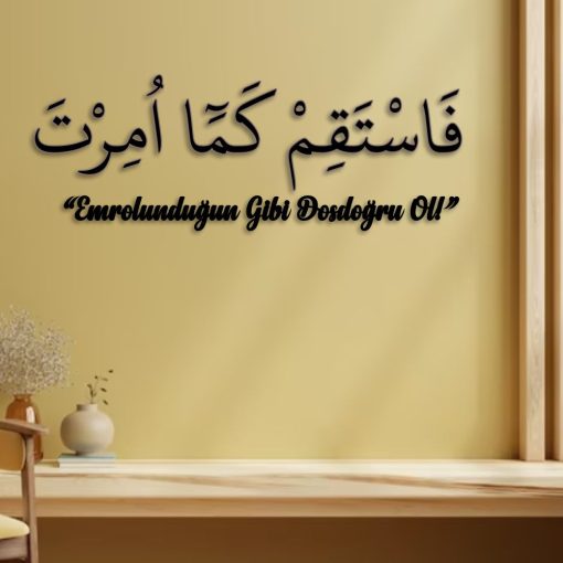 Emrolunduğun gibi dosdoğru ol ayeti yazılı İslami Duvar yazısı, ev veya iş yerlerini İslamî motiflerle dekore etmek isteyenler için harika bir seçimdir.